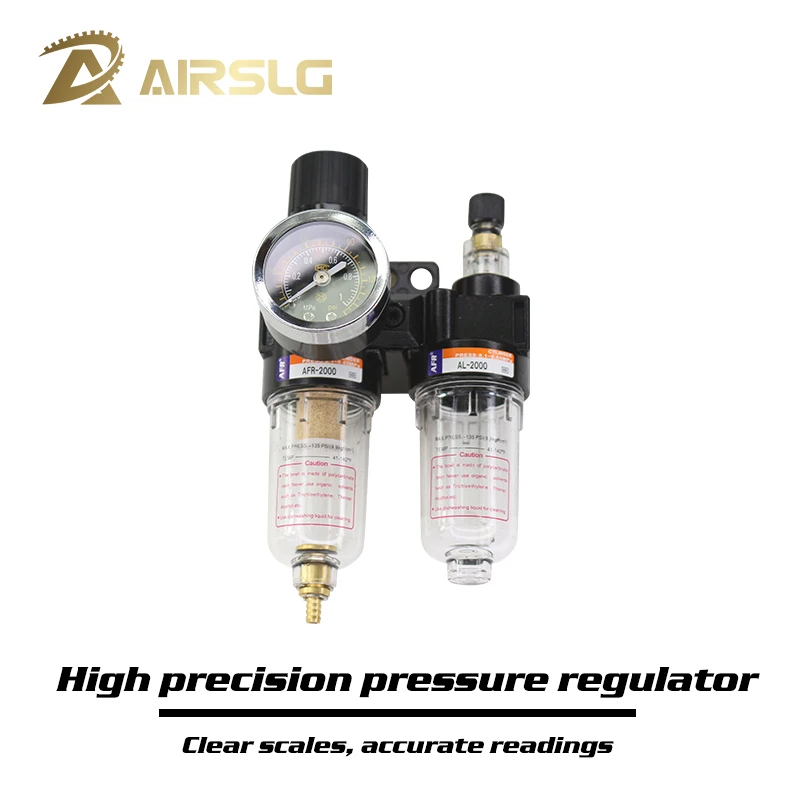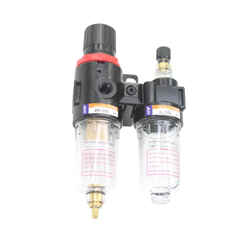 Product Name Air Source Treatment Filter Material: Metal, Plastic Working Medium Air Port Size : PT1/4 Max. Pressure 9.9kgf/cm2 Max Adjustable Pressure Range : 0.95Mpa/135Psi/9.5bar Pressure Resistance :1.5MPa/217Psi/1.5~8.5bar Temperature Range: 5~60 Degree Water Filter Cup Capacity :15CC Water Cup Capacity: 25CC weight :375g Package: 1 x Air Source Treatment 1 x Pressure Gauge