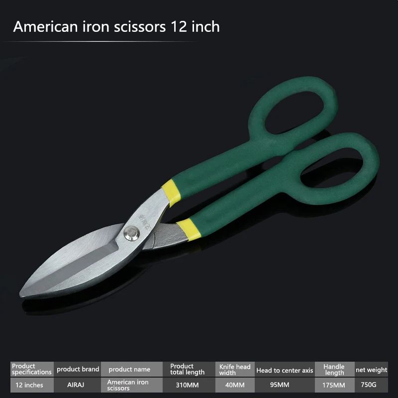 AIRAJ 8/10/12 Inch Large Iron Sheet Scissors Industrial Grade Alloy Steel Plate PVC Pipe Cutting Aviation Shears