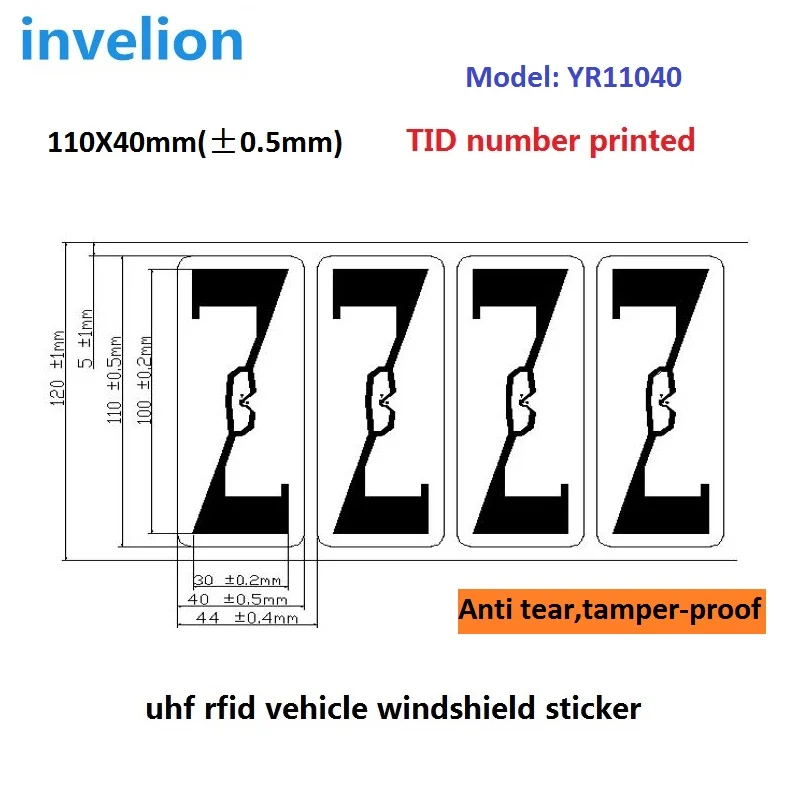 Printed TID UV resistant design UHF Vehicle Windshield Anti-tear sticker passive Adhesive RFID Tag for Car Parking
