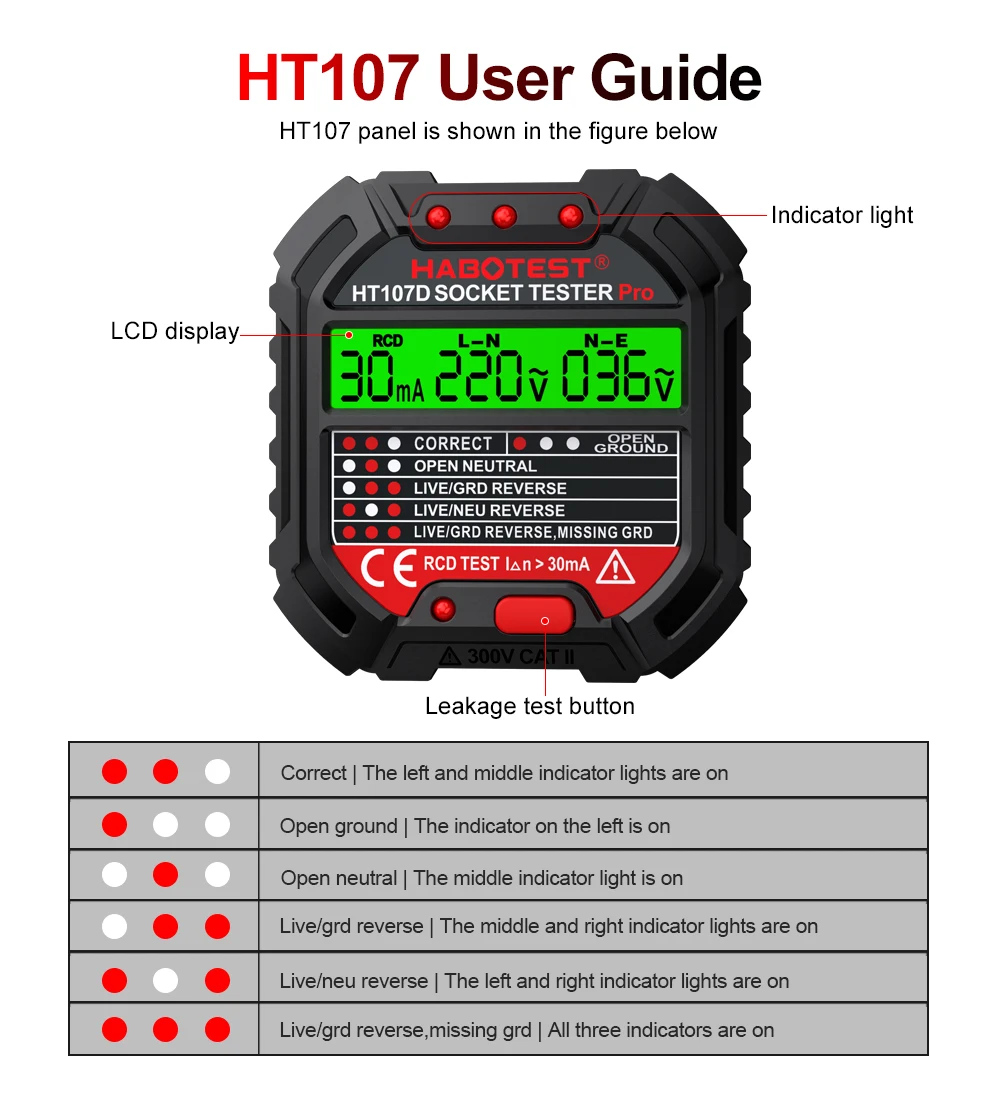 HT106 HT107 Socket Tester Pro Voltage Test Digital Outlet Socket Detect US/UK/EU Plug Ground Zero Line Plug Polarity Phase Check
