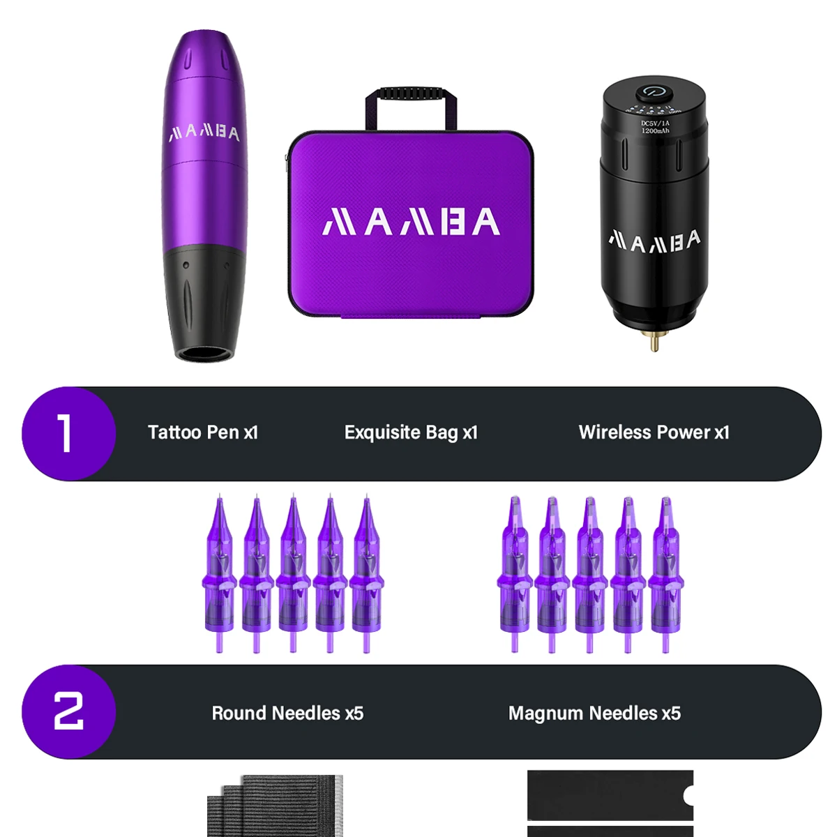 Wireless Tattoo Machine Complete Kit Rotary Tattoo Machine Set Battery Cartridge Needles Power Supply Permanent MakeupTattoo Set
