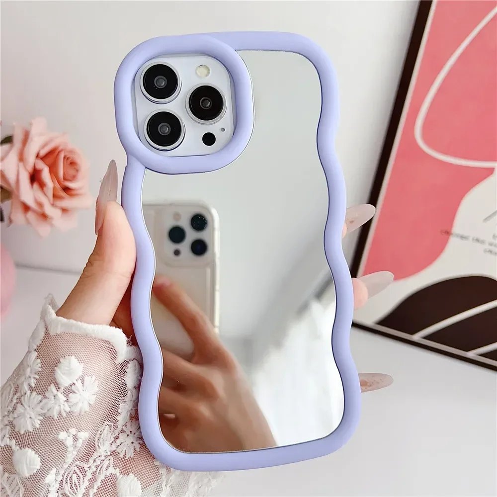 Ins Mirror Wave Design Case For iPhone 15 14 13 12 11 Pro Max Plus X XR XS Max 6 7 8 Plus Bumper Curly Wavy Aesthetic Armor Case